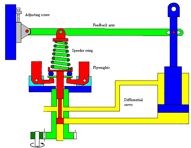 When the governor reacts to load change then inertia of the engine response can lead to overshoot in speed change which can have a cumulative effect. To prevent this a feedback system is used. In the case of the governor systems above this has the effect of modifying the speed set point .
